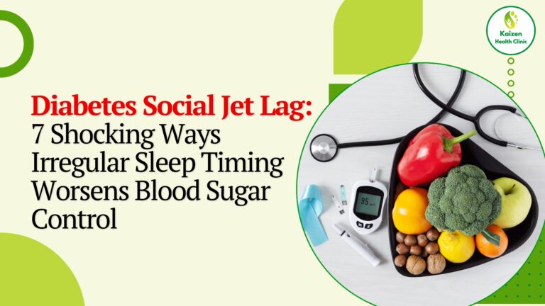 Diabetes Social Jet Lag: 7 Shocking Ways Irregular Sleep Timing Worsens Blood Sugar Control ✔ Table of Contents Diabetes Social Jet Lag: 7 Shocking Ways Irregular Sleep Timing Worsens Blood Sugar Control You eat well.You walk daily.You take your medicines. Yet your blood sugar refuses to stabilise. Here’s the uncomfortable truth most diabetics never hear: Your body may be living in a constant state of jet lag — without ever boarding a plane. This condition is called Diabetes Social Jet Lag, and it is one of the most overlooked reasons for insulin resistance, stubborn fasting glucose, and unexplained sugar spikes. 1. What Is Diabetes Social Jet Lag? Social jet lag occurs when your biological clock and your social schedule are misaligned. Examples: Your body experiences this like flying across time zones multiple times every week. For diabetics, this is metabolic chaos. 2. Why Your Body Hates Irregular Timing Your pancreas, liver, muscles, and hormones run on circadian rhythms — internal clocks set by light, darkness, sleep, and meal timing. When timing changes: Blood sugar doesn’t just depend on what you eat —it depends on when your body expects food, sleep, and activity. 3. How Late Nights Spike Blood Sugar Late nights do three damaging things: Even if you eat the same breakfast, your sugar will be higher after a late night. This is why fasting glucose often worsens after: 4. Weekend Sleep-Ins: The Hidden Glucose Bomb Sleeping late on weekends feels harmless. It’s not. Weekend sleep-ins: Studies show even a …