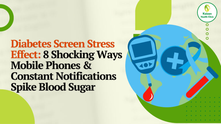 Diabetes Screen Stress Effect:8 Shocking Ways Mobile Phones & Constant Notifications Spike Blood Sugar Table of Contents Diabetes Screen Stress Effect: 8 Shocking Ways Mobile Phones & Constant Notifications Spike Blood Sugar You check your sugar.It’s high. You replay yesterday in your head: So what went wrong? Here’s the uncomfortable answer: Your phone may be stressing your metabolism more than your food. Welcome to the Diabetes Screen Stress Effect — a modern, invisible trigger of insulin resistance that millions of diabetics experience daily without realising it. 1. What Is the Diabetes Screen Stress Effect? The Diabetes Screen Stress Effect refers to the blood sugar–raising impact of excessive screen exposure, especially from: Screens don’t just affect your eyes. They stimulate your sympathetic nervous system — the same system that raises blood sugar during danger. 2. Why Screens Are a Metabolic Stressor Your brain cannot differentiate between: Each alert activates: This was useful for survival. In modern life, it becomes chronic sugar elevation. 3. The Cortisol–Notification Loop Here’s what happens every time your phone buzzes: Now multiply this by 100+ notifications per day. You’re living in a constant glucose emergency mode. 4. Dopamine Drain & Insulin Resistance Scrolling creates rapid dopamine hits. Over time: Low dopamine is strongly linked to: This is why screen-heavy days often end with: 5. Blue Light, Sleep & Morning Sugar Spikes Late-night screen use delays melatonin. Melatonin: When melatonin stays high into the morning: This explains why many diabetics wake up with high fasting sugar after screen-heavy …