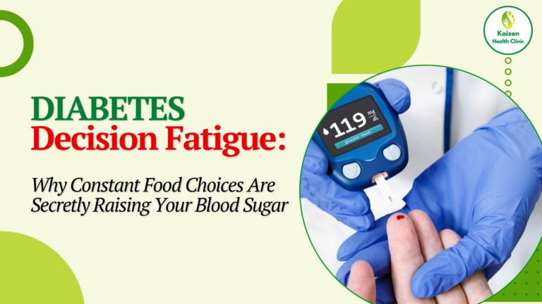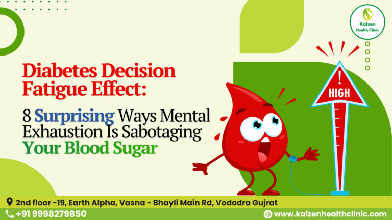 Diabetes Decision Fatigue: Why Constant Food Choices Are Secretly Raising Your Blood Sugar Discover how Diabetes Decision Fatigue silently increases blood sugar through cortisol, mental overload, and poor insulin response. Learn simple strategies to reduce glucose spikes by fixing decision stress—not diet alone. Table of Contents Diabetes Decision Fatigue: The Shocking Mental Trap That Raises Blood Sugar Without Food Most diabetics obsess over what they eat. Very few realise this uncomfortable truth: Your blood sugar can rise simply because your brain is exhausted. No sweets.No carbs.No cheating. Just mental overload. Welcome to Diabetes Decision Fatigue — a silent, modern trigger of insulin resistance that almost no one talks about, yet millions experience daily. 1. What Is Diabetes Decision Fatigue? Decision fatigue is a neurological state where your brain becomes overwhelmed by too many choices. For a diabetic, this looks like: Every choice consumes glucose and neurotransmitters in the brain. When the brain gets tired, it activates stress hormones — and that directly affects blood sugar. 2. The Brain–Blood Sugar Connection (Simple Biology) Your brain runs almost entirely on glucose. When decision-making increases: Result? 👉 Blood sugar rises without food intake This is why some people see unexplained spikes during stressful or mentally busy days. 3. How Mental Overload Raises Glucose (Even Without Eating) Here’s the hidden pathway: Mental overload → cortisol spike → insulin resistance → liver glucose dump Cortisol’s job is survival. When your brain feels overwhelmed, cortisol assumes danger and commands the liver to release glucose — just …