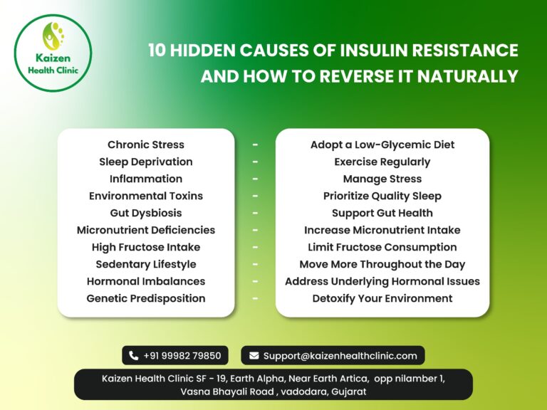 10 Hidden Causes of Insulin Resistance and How to Reverse It Naturally 10 Hidden Causes of Insulin Resistance & Natural Reversal Tips"Discover the 10 hidden causes of insulin resistance that may surprise you. Learn natural, science-backed ways to reverse insulin resistance and improve your health today!"Introduction : 10 Hidden Causes of Insulin Resistance and How to Reverse It NaturallyDid you know that insulin resistance is one of the leading causes of Type 2 diabetes, yet most people don’t even realize they have it?While many blame sugar and carbs, there are numerous hidden causes of insulin resistance that go unnoticed. From chronic stress to cooking methods, these factors can silently disrupt your body’s ability to regulate blood sugar.In this blog, we’ll uncover the 10 hidden causes of insulin resistance and provide practical, natural solutions to help you reverse it. Whether you’re prediabetic or just health-conscious, this guide is for you. Chronic Stress Stress triggers the release of cortisol, a hormone that increases blood sugar levels. Prolonged stress can impair insulin function, leading to insulin resistance.Solution:Practice daily relaxation techniques like deep breathing, yoga, or meditation.Set boundaries to avoid overwork and burnout. Poor Sleep QualitySleep deprivation disrupts insulin regulation and can make your cells less responsive to insulin. Even a single night of bad sleep can negatively impact your metabolism.Solution:Aim for 7–8 hours of uninterrupted sleep.Maintain a consistent sleep schedule and create a bedtime routine. Advanced Glycation End Products (AGEs)High-temperature cooking (frying, grilling) produces AGEs, harmful compounds that contribute to inflammation and insulin …